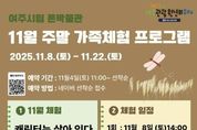 [경기뉴스원/경기뉴스1] | 여주세종문화관광재단은 여주시립 폰박물관에서 2025년 11월 8일부터 11월 22일까지 매주 토요일 오후 2시, 온 가족이 함께 즐길 수 있는 ‘11월 주말 가족 체험 프로그램’을 운영한다고 밝혔다. 이번 프로그램의 주제는 ‘캐릭터는 살아 있다. -우드 큐브 만들기‘로 나무 재질의 큐브를 활용해 직접 꾸미고 조립하며 자신만의 캐릭터를 완성하는 체험 활동이다. 단순한 만들기를 넘어 창의력과 상상력을 자유롭게 발휘할 수 있으며 부모와 자녀가 함께 협동하고 소통하며 즐길 수 있는 가족 중심의 참여형 프로그램으로 구성됐다. 체험은 총 3회(11월 8일, 15일, 22일) 진행되며 매회 오후 2시에 시작된다. 참가 예약은 11월 4일 오전 10시부터 네이버 예약을 통해 가능하며 매회 20명을 선착순 모집한다. 이순열 이사장은 ”이번 11월 프로그램은 부모와 자녀가 함께 나무 블럭 큐브를 만들며 특별하고 즐거운 시간을 보낼 수 있도록 마련됐다. 이번 체험을 통해 가족이 함께 창의력을 발휘하고 서로에게 특별한 추억을 남기기를 바란다“고 전했다. 이번 프로그램은 여주시립 폰박물관이 기