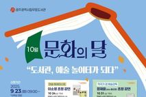 [경기뉴스원/경기뉴스1] | 광주광역시립도서관(무등·사직·산수)은 ‘10월 문화의 달’을 맞아 가족들이 도서관에서 함께 즐길 수 있는 강연, 전시, 체험 프로그램 등 ‘도서관, 예술 놀이터가 되다’ 행사를 운영한다. 무등도서관은 10월 한달 간 가을·책 주제 ‘민화 단체전’과 자료실 테마도서 전시를 연다. 오는 24일 아트컬렉터 이소영(미술 에세이스트)의 ‘현대미술 클로즈업!’, 31일 예술감독 정재윤(aka 쥴리정)의 ‘문학 속 음악의 장면들’, 19일과 29일에는 ‘제로웨이스트 특강’으로 친환경 비누 만들기와 캘리그라피 텀블러 만들기 체험 행사를 운영한다. 사직도서관은 10월 한달 동안 전통문화 ‘조선 화원의 하루’ 원화 전시, 자료실 테마도서 전시를 진행한다. 이와 함께 22일 이승연 작가의 ‘케이(K) 콘텐츠의 중심 한국 영화를 말하다’, 25일 ‘나만의 보자기 가방 만들기’ 전통문화 체험프로그램을 준비했다. 산수도서관은 13일부터 24일까지 ‘엄마는 좋다’ 그림책 원화 전시와 연체자 해방의 날 행사를 운영하고, 16일에는 빛과 무늬로 완성하는 자개거울 체험을, 23일에는 실용과 멋을 담은 냄비받침 체험