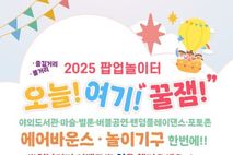 [경기뉴스원/경기뉴스1] | 청주시는 아이들을 위해 준비한 팝업 놀이터 ‘오늘! 여기! 꿀잼’을 오는 11일 오전 11시부터 오후 3시까지 생명누리공원에서 운영한다. 팝업 놀이터는 생활권 가까운 공원에 설치돼 아이들이 마음껏 뛰어놀 수 있는 이동식 테마 놀이터로, 상반기에 큰 호응을 얻으며 가족형 축제로 자리매김했다. 이번 5회차 운영에서는 다채로운 공연·놀이기구·체험 프로그램이 풍성하게 마련된다. 메인무대에서는 디제잉 공연을 비롯해 벌룬·마술·버블 공연이 펼쳐지고, 연날리기 대회와 가족 운동회도 진행된다. 잔디밭에는 놀이존과 체험존이 조성되며, 특히 가족 단위로 즐길 수 있는 야외도서관이 새롭게 운영된다. 놀이존에는 아이들이 좋아하는 바이킹, 미니기차, 패달보트, 에어바운스, 키즈챌린지 등이 준비되고, 야구·축구·공맞추기 등 게임형 체험도 가능하다. 일부 놀이기구는 현장 예약제로 운영된다. 체험존에서는 페이스페인팅, 풍선아트, 민속놀이(투호·제기차기·굴렁쇠 등), 비눗방울 체험을 비롯해 청주공예비엔날레 조직위원회, 청주시립도서관, 청주시서점조합과 연계한 문화체험 프로그램도 마련된다.
