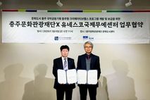 [경기뉴스원/경기뉴스1] | (재)충주문화관광재단 문화도시센터는 지난 6일 유네스코 국제무예센터(이하 무예센터)와 함께 ‘실버 세대를 위한 크리에이티브 헬스 무예 프로그램 개발 및 확산’을 위한 업무협약(MOU)을 체결했다. 이번 협약은 문화도시 사업의 일환인 “크레이티브 에이징:우륵 사업”의 확장으로서 충주시 고령 인구 증가에 따른 실버 세대의 신체 기능 저하와 정서적 불안, 사회적 고립 문제를 해소하기 위해 추진됐다. 충주가 보유한 세계적인 자산인 ‘무예’를 시니어 세대의 건강 증진과 정서 치유에 접목해, 새로운 형태의 지역 특화 복지 모델을 구축하겠다는 취지다. 양 기관은 이번 협약에 따라 ▲시니어 맞춤형 교육 콘텐츠 공동 개발 ▲프로그램 운영을 위한 인적·물적 자원 교류 ▲무예를 활용한 사회적 처방 및 치유 사례 공유 등에 적극 협력할 방침이다. 이번 사업의 핵심인 ‘크리에이티브 헬스 프로그램’은 그 동안 대한민국 문화도시 충주의 예술 중심의 실버 세대 프로그램이 실생활로 확장하는 계기이다. 특히 택견이 가진 부드러운 곡선의 움직임과 상생의 정신을 현대적인 예술 치유와 결합해 안전성, 접근성, 지속가능성