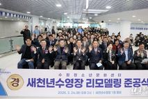 [경기뉴스원/경기뉴스1] | 수원특례시의회는 24일 청소년문화센터 내 새천년수영장에서 열린 '새천년수영장 리모델링 공사 준공식'에 참석해 준공을 축하했다. 이번 준공식은 노후화된 수영장을 전면 리모델링해 보다 쾌적하고 안전한 환경으로 개선한 것을 기념하기 위해 마련됐다. 새천년수영장은 향후 시범운영을 거쳐 시민들에게 개방될 예정이다. 이날 행사에는 이재식 의장을 비롯해 김정렬 부의장(더불어민주당, 평·금곡·호매실), 더불어민주당 교섭단체 대표 김동은 의원(더불어민주당, 정자1·2·3), 기획경제위원회 장정희 위원장(더불어민주당, 권선2·곡선), 예산결산특별위원회 오세철 위원장(더불어민주당, 파장·송죽·조원2) 등 의장단과 시의원, 관계자와 시민들이 참석해 준공을 함께 축하하고 시설을 둘러봤다. 이재식 의장은 “오랜 기다림 끝에 새천년수영장이 더욱 쾌적하고 안전한 모습으로 새롭게 단장된 것을 뜻깊게 생각하며, 공사 기간 동안 불편을 감내해 주신 시민과 관계자들께 감사드린다”며 “수원특례시의회는 시민 누구나 가까운 곳에서 건강한 일상을 누릴 수 있도록 체육 환경 조성에 더욱 힘쓰겠다”고 밝혔다.