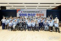 [경기뉴스원/경기뉴스1] | 오산시장애인체육회는 ‘제16회 경기도장애인체육대회 2026 광주’에 참가하는 오산시 선수단 출정식을 지난 10일 오산오색문화체육센터에서 개최했다고 밝혔다. 이날 출정식에는 이권재 오산시장을 비롯해 시의원, 장애유형별 단체장, 종목별 가맹단체장 및 임원 등 내빈과 선수단 등 130여 명이 참석해 선수들의 사기를 북돋우고 선전을 다짐했다. 오산시 선수단은 이번 대회에 당구, 론볼, 배드민턴, 보치아, 볼링, 역도, 조정, 탁구, 파크골프, 육상, 수영 등 11개 종목에 총 75명이 참가해 그동안 갈고닦은 기량을 펼칠 예정이다. 출정식은 개회선언을 시작으로 격려사와 축사, 선수단 소개, 단기 수여, 선수대표 선서, 필승구호 제창, 후원기금 및 격려금 전달 순으로 진행됐다. 특히 선수대표는 정정당당한 경기와 최선을 다하는 자세로 임할 것을 다짐하며 선수단의 결의를 다졌다. 이권재 오산시장은 “힘든 훈련을 이겨내고 이 자리에 선 선수들이 자랑스럽다”며 “부상 없이 안전에 유의해 최고의 기량을 발휘하고 돌아오길 바란다”고 격려했다. 한편, ‘제16회 경기도장애인체육대회
