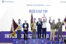 [경기뉴스원/경기뉴스1] | 의왕시 선수단이 4월 16일, 광주시 G-스타디움에서 열린 '제72회 경기도체육대회 2026 광주' 개회식에 참석해 앞으로 치러질 경기에서의 선전을 다짐했다. ‘경기도의 힘찬 도약, 광주에서!’를 표어(슬로건)로 이날부터 18일까지 3일간 진행되는 이번 대회에는 총 27개 종목에 1만 2천여 명의 선수단이 참여해 열띤 경쟁을 펼친다. 의왕시는 대회 2부에 참가해 육상, 탁구 등 25개 종목에 426명의 선수단이 출전한다. 의왕시 선수단의 선전을 격려하기 위해 개회식에 참석한 김성제 시장은 “선수단의 땀과 열정을 응원한다”며 “그간 갈고닦은 실력을 이번 대회에서 유감없이 발휘해 주길 바란다”고 말했다.