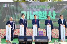 [경기뉴스원/경기뉴스1] | 예산군은 지난 24일 예산상설시장 일원에서 ‘청춘사과’를 주제로 한 ‘제22회 예산사과축제’ 개막식을 갖고 나흘간의 축제 시작을 알렸다. 이번 축제에는 가족과 관광객 등 약 500여 명이 참여해 시장 곳곳에서 마련된 △예산사과 세일행사 △사과 디저트 시식 △사과공예 및 체험 프로그램 등을 즐겼다. 개막식에서는 가수 장민호가 축하공연을 펼쳤으며, 사과 상징 복장을 한 연기자들이 축제장 곳곳을 누비면서 분위기를 한껏 고조시켰다. 군은 축제 기간 동안 예산능금농협과 지역 농가가 참여한 직거래 장터를 운영해 방문객들이 신선한 예산사과를 직접 구입할 수 있도록 지원하고 있다. 또한 축제장 내 다양한 부스와 체험공간을 마련해 아이와 어른 모두 즐길 수 있는 가을 축제의 장을 조성했다. 예산능금농협 관계자는 “올해 예산상설시장에서 진행되는 사과축제에 많은 관심과 참여를 부탁드린다”며 “예산사과의 맛과 향, 그리고 지역 농업인의 정성을 느낄 수 있는 자리”라고 말했다. 군 관계자는 “사과축제를 통해 지역 농가의 판로 확대와 지역경제 활성화에 기여하고, 예산사