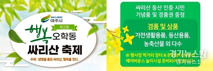 경기뉴스원(경기뉴스1) | 제2회 행복 오학동 싸리산축제가 오는 4월 20일부터 21일까지 여주시 수변광장(수상센터 일원)에서 개최된다.