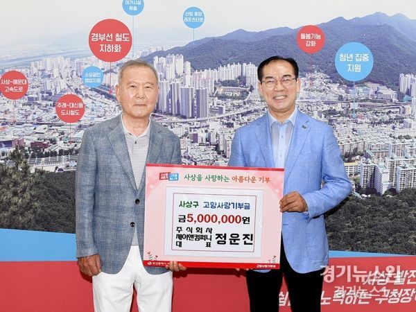 경기뉴스원(경기뉴스1) | 부산 사상구는 지난달 21일 ㈜제이앤컴퍼니 정운진 대표가 고향사랑기부금 500만원을 기부했다고 밝혔다.