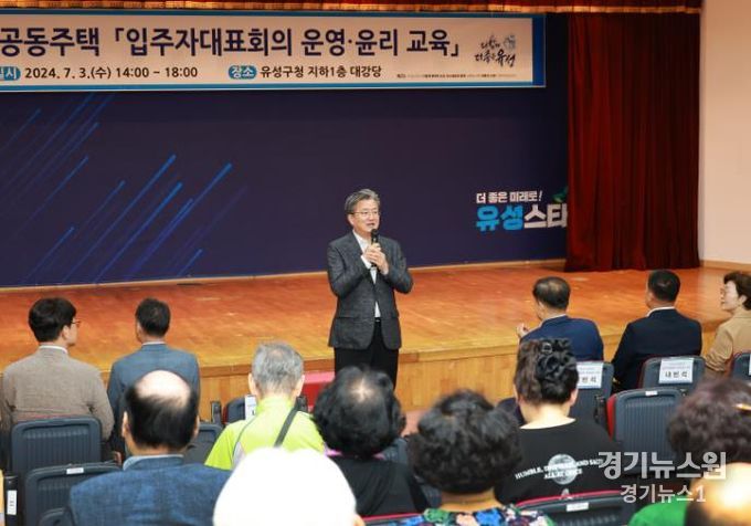 경기뉴스원(경기뉴스1) | 대전 유성구는 지난 3일 구청 본관 대강당(지하1층)에서 공동주택 입주자대표회의, 입주민, 관리주체 등 200여 명을 대상으로 “공동주택 입주자대표회의 운영 및 윤리교육”을 실시했다.
