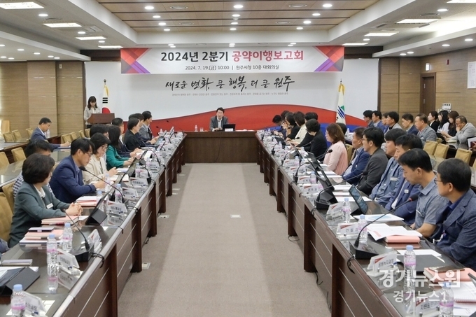 경기뉴스원(경기뉴스1) |원주시는 이달 19일 10시 시청 10층 대회의실에서 민선8기 2주년을 맞아 공약이행 상황 공개 및 점검을 위한 ‘공약 이행 보고회’를 개최했다.