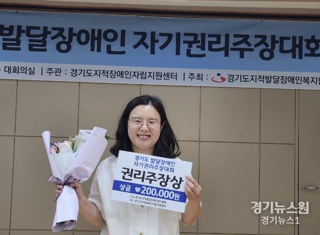 경기뉴스원(경기뉴스1) | 수원시 장애인복지일자리사업에 참여하고 있는 이혜수(28)씨가 ‘2024년 경기도 발달장애인 자기권리주장대회’에서 최우수상을 받았다.