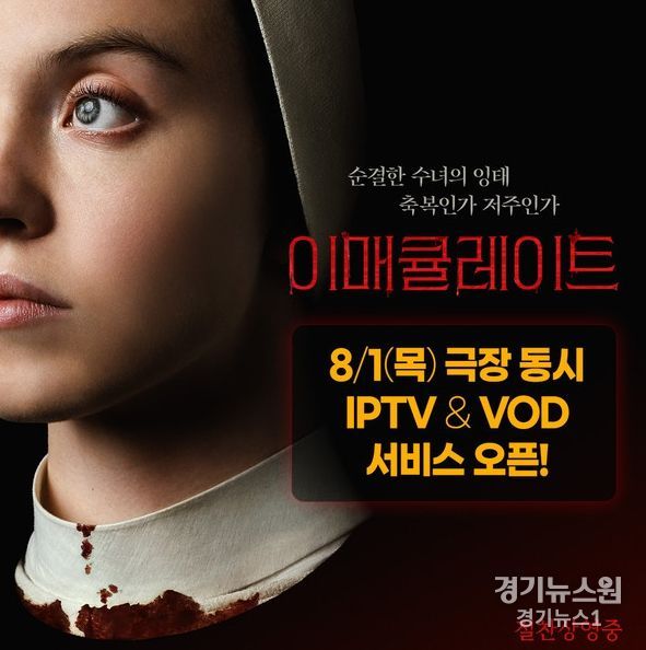 경기뉴스원(경기뉴스1) | 파격적인 소재로 극장가에 핏빛 공포를 안겼던 '이매큘레이트'가 8월 1일(목) 오늘부터 IPTV 및 VOD 서비스를 시작한다.[감독: 마이클 모한 | 출연: 시드니 스위니, 알바로 모르테 | 수입: (주)엔케이컨텐츠 | 배급: (주)디스테이션]