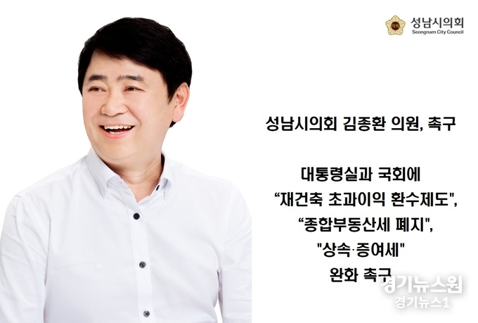 성남시의회 국민의힘 김종환 의원(판교, 백현, 운중)은 지난 22일 제295회 임시회 2차 본회의에서 「재건축 초과이익 환수제도와 종합부동산세 폐지 및 상속·증여세 완화를 위한 촉구결의안」을 대표 발의하여 본 회의에서 최종 통과됐다.