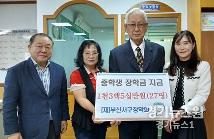 경기뉴스원(경기뉴스1) | (재)부산서구장학회는 지난 27일 서구에 거주하는 중학생 27명에게 총 1,350만 원(1인당 50만 원)의 장학금을 지급했다.