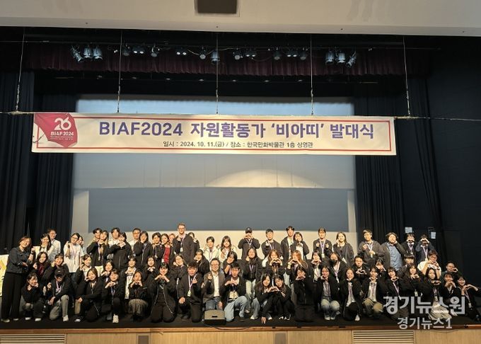 경기뉴스원(경기뉴스1) | 10월 25일 개막을 앞둔 BIAF2024가 지난 11일 한국만화박물관 1층 상영관에서 자원활동가 ‘비아띠’ 발대식 및 전체교육을 진행했다.