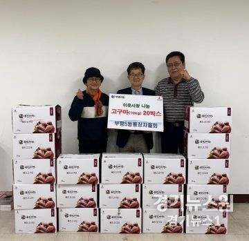 경기뉴스원(경기뉴스1) | 부평구 부평5동 통장자율회는 지난 23일 지역 내 어려운 이웃을 위해 고구마(10kg) 20상자를 기탁했다.