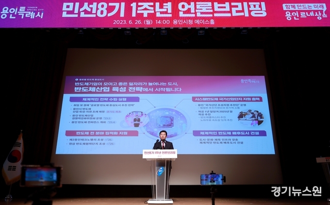 이상일 용인특례시장은 민선 8기 용인특례시장 취임 1주년을 맞아 26일 시청 에이스홀에서 언론 브리핑을 했다.