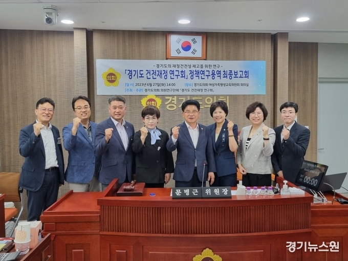 경기뉴스원 유형수 기자 | 경기도의회 의원연구단체 ‘경기도 건전재정 연구회’(회장 문병근 의원)는 27일(화) 의회 여성가족평생교육위원회 회의실에서 경기도 재정건전성 제고를 위한 연구에 대한 정책연구용역 최종보고회를 개최했다.