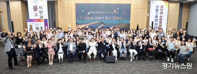 이번 기념식은 수원특례시의회 김기정 의장, 이재식 부의장을 비롯한 의원들과 주요 내빈, 시민 등 100여명이 참석했으며, MC 이창명이 사회를 맡았다. 1부 개회식에 이어 2부 행사는 의원과 시민이 함께하는‘시민과 의원이 묻고 답하다’로 진행됐다.
