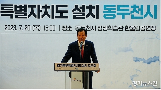 ‘경기북부 특별자치도의 비전과 과제’라는 주제로 열린 이번 토론회에서 박형덕 동두천시장이 환영사를 하고, 김승호 동두천시의회 의장과 임상오(국민의힘, 동두천2) 경기도의원이 이어 축사를 했다.