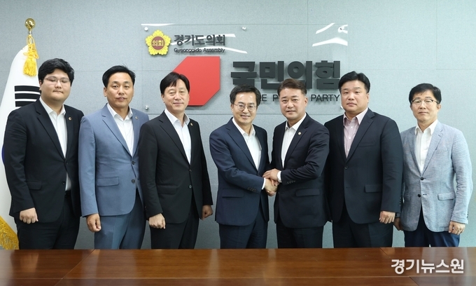 도의회 국민의힘 김정호 대표의원은 이날 대표단을 찾은 김 지사를 접견하고 “경기도와 도의회 국민의힘이 연정(聯政)에 준하는 협치와 소통을 이뤘으면 한다”는 뜻을 전했다.