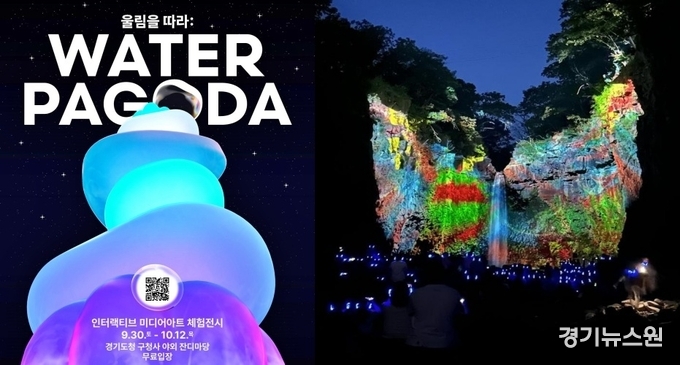 경기도청 구청사 잔디마당에서는 참여형 미디어아트 전시 ‘오르:빛 워터파고다’를 만나볼 수 있다. 연천의 재인폭포에서는 폭포의 자연경관을 활용한 미디어파사드 ‘오르:빛 재인폭포’를 선보인다.