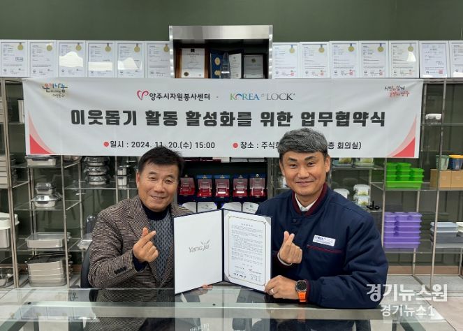 경기뉴스원(경기뉴스1) | 사)양주시자원봉사센터는 지난 20일, 주식회사 코리아락과 지역사회 이웃돕기 활동을 활성화하기 위한 업무협약을 체결했다고 밝혔다.