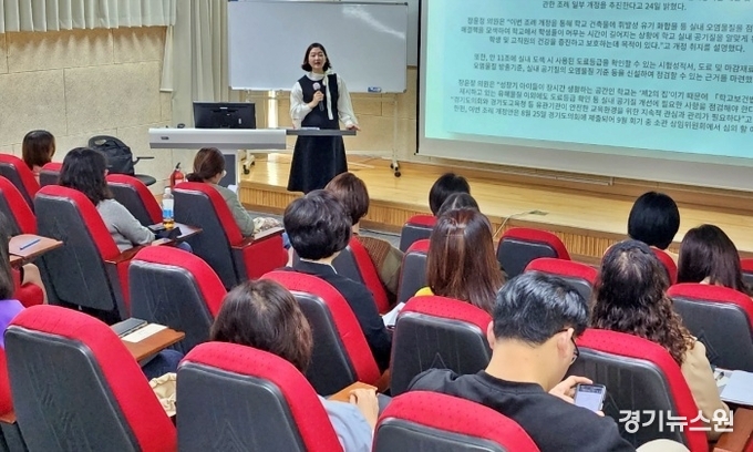 경기도의회 교육기획위원회 장윤정 의원(더불어민주당, 안산3)은 10월16일에 안산시 평생학습관에서 진행된 2023 안산 단설유·초등 교육행정실장협의회 연수에서 경기도의회의 역할과 활동에 대한 강연을 진행했다.