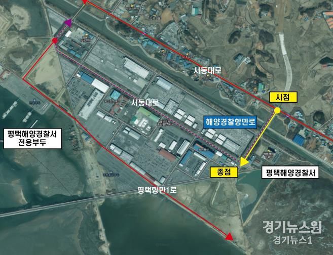 경기뉴스원(경기뉴스1) | 평택시는 해양 치안을 담당하는 해양경찰의 중요성을 널리 알리고 그들의 노고를 기리기 위해 28일 포승읍 신영리 서동대로 일대에 명예도로명 ‘해양경찰항만로’를 부여했다고 밝혔다.