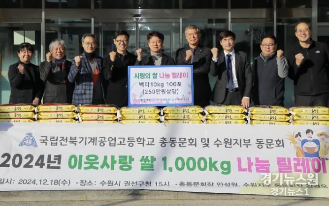 경기뉴스원(경기뉴스1) | 수원시 권선구는 지난 18일 국립전북기계공고 총동문회에서 백미(10kg) 100포를 후원했다고 밝혔다.