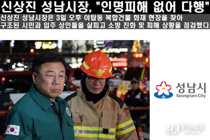 경기뉴스원(경기뉴스1) | 신상진 성남시장은 3일 오후 야탑동 복합건물 화재 현장을 찾아 구조된 시민과 입주 상인들을 살피고 소방 진화 및 피해 상황을 점검했다.
