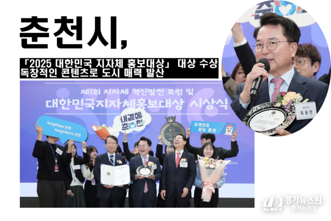 경기뉴스원(경기뉴스1) | 춘천시(시장: 육동한)가 「2025 대한민국 지자체 홍보대상」에서 정책 부문 대상을 수상하며, 그 독창적인 홍보 콘텐츠로 주목을 받았다. 이번 대회는 한국미디어영상교육진흥원이 주관하고 방송통신위원회가 후원하는 행사로, 전국 60여 개 지자체가 참여한 가운데 다양한 부문에서 경쟁을 벌였다.