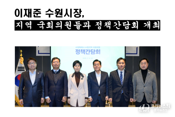 경기뉴스원(경기뉴스1) | 이재준 수원시장은 14일 라마다프라자수원호텔에서 수원 지역 국회의원들과 정책간담회를 열고 지역 현안 해결을 위한 협력을 요청했다. 이날 간담회에는 백혜련, 김영진, 김승원, 김준혁, 염태영 의원 등이 참석했다.