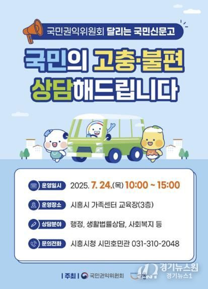 경기뉴스원(경기뉴스1) | 시흥시 시민호민관(시민고충처리위원회)은 국민권익위원회와 함께 시민들의 고충 해결을 위한 ‘달리는 국민신문고’를 오는 7월 24일 오전 10시부터 오후 3시까지 시흥시 가족센터 3층 교육장(시흥시 정왕천로449번길 51)에서 운영한다.