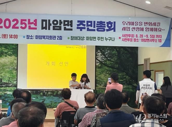 [경기뉴스원/경기뉴스1] | 고성군 마암면주민자치회는 9월 6일, 마암복지회관에서 주민 80여 명이 참석한 가운데 2025년 마암면 주민총회를 개최했다.