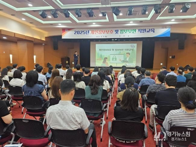 [경기뉴스원/경기뉴스1] | 진주시는 8일 시청 2층 시민홀에서 공무원들의 개인정보 보호역량 강화를 위한 ‘2025년 개인정보 보호 및 정보보안 직원교육’을 실시했다.