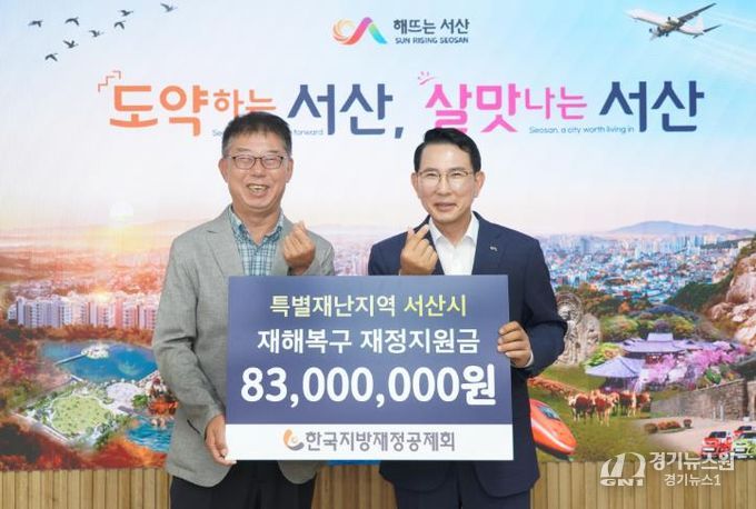 [경기뉴스원/경기뉴스1] | 충남 서산시는 9일 한국지방재정공제회로부터 특별재난지역 재해복구 재정 지원금 8천3백만 원을 전달받았다고 밝혔다.