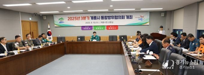 [경기뉴스원/경기뉴스1] | 계룡시는 10일 시청 상황실에서 지역 방위태세 확립을 위한 ‘2025년도 3분기 통합방위협의회’를 개최했다고 밝혔다.