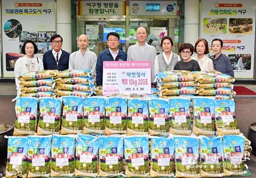 공한수 서구청장은 “매년 변함없이 나눔을 실천해 주시는 약천정사에 깊이 감사드린다”며 “기탁된 쌀은 꼭 필요한 곳에 소중히 전달하겠다”고 밝혔다.