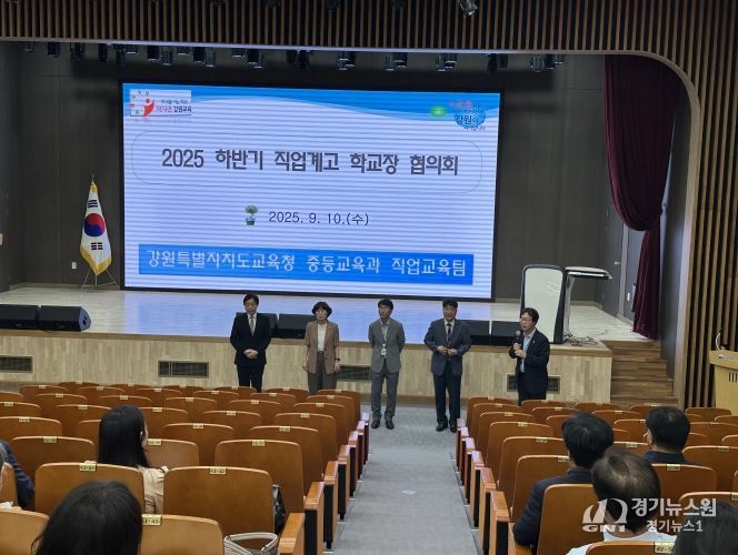 [경기뉴스원/경기뉴스1] | 강원특별자치도교육청은 10일 도교육청 6층 대강당에서 도내 직업계고등학교 학교장과 직업교육부장을 대상으로 ‘2025년 하반기 직업계고 학교장 협의회’를 개최했다.