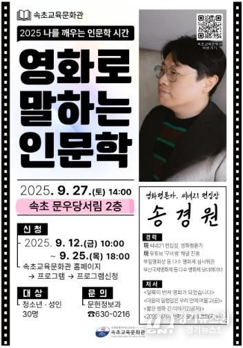 강연 참여 신청은 9월 12일 10시부터 9월 25일 18시까지 속초교육문화관 누리집을 통해 가능하다.