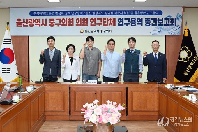 [경기뉴스원/경기뉴스1] | 울산 중구의회는 11일 의원회의실에서 공공배달앱 운영활성화 정책연구와 병영성 북문지 복원 연구 등 2개 연구단체 용역중간보고회를 가졌다.