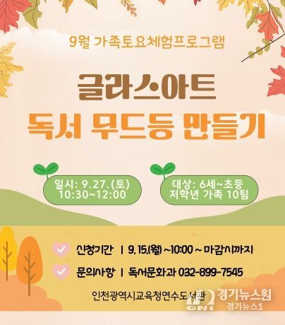 [경기뉴스원/경기뉴스1] | 인천광역시교육청연수도서관은 9월 27일 오전 10시 30분부터 평생학습1실에서 가족 단위 이용자를 위한 ‘가족 토요체험 프로그램’을 운영한다.