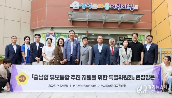[경기뉴스원/경기뉴스1] | 충남도의회 ‘충남형 유보통합 추진 지원을 위한 특별위원회’는 12일 제4차 회의와 연계해 아산시 삼성트라움어린이집과 육아종합지원센터 현장을 방문했다. 이날 유보특위는 운영 현황을 점검하고 유보통합 추진과정에서 제기된 과제와 개선 방안을 모색했다.