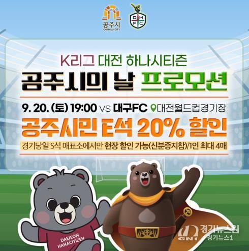[경기뉴스원/경기뉴스1] | 공주시는 오는 20일 대전월드컵경기장에서 열리는 대전하나시티즌과 대구축구단의 2025년 K리그1 제30라운드 경기에 맞춰 ‘공주시의 날’ 행사를 연다.