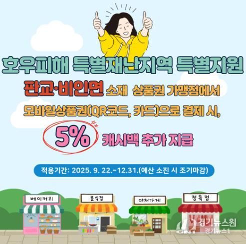 [경기뉴스원/경기뉴스1] | 서천군은 오는 22일부터 판교면․비인면 소재 모바일(카드) 서천사랑상품권 가맹점에서 결제 시 결제금액의 5% 추가 캐시백을 지급한다.