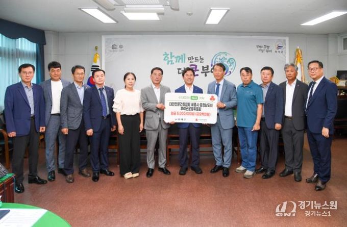 [경기뉴스원/경기뉴스1] | 대한전문건설협회 세종시·충청남도회 부여군운영위원회는 집중호우로 피해를 본 가구를 돕기 위해 지난 12일 성금 500만 원을 부여군에 기탁했다.
