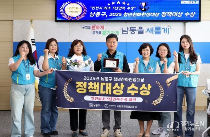 [경기뉴스원/경기뉴스1] | 인천시 남동구는 ‘2025 청년친화헌정대상’에서 우수 기초자치단체 부문 정책대상을 수상했다고 19일 밝혔다.