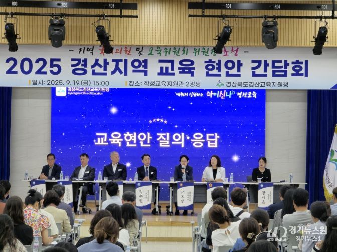 [경기뉴스원/경기뉴스1] | 경상북도경산교육지원청은 9월 19일 15:00, 학생교육지원관 2강당에서 조지연 국회의원과 박채아 교육위원회 위원장을 초청하여 경산지역 교육현안을 논의하는 간담회를 개최했다.