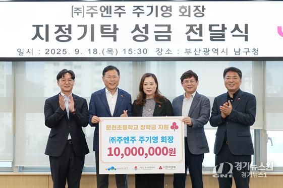 [경기뉴스원/경기뉴스1] | 지난 18일 부산 아너소사이어티 회원인 ㈜주엔주 주기영 회장은 모교인 부산 남구 문현초등학교의 가정형편이 어려운 학생 20명에게 성금 총 1,000만 원을 전달했다.