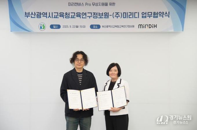 [경기뉴스원/경기뉴스1] | 부산광역시교육청교육연구정보원은 지난 22일 오후 교육연구정보원 회의실에서 (주)미리디(대표 강창석)와 업무협약을 체결했다고 밝혔다.