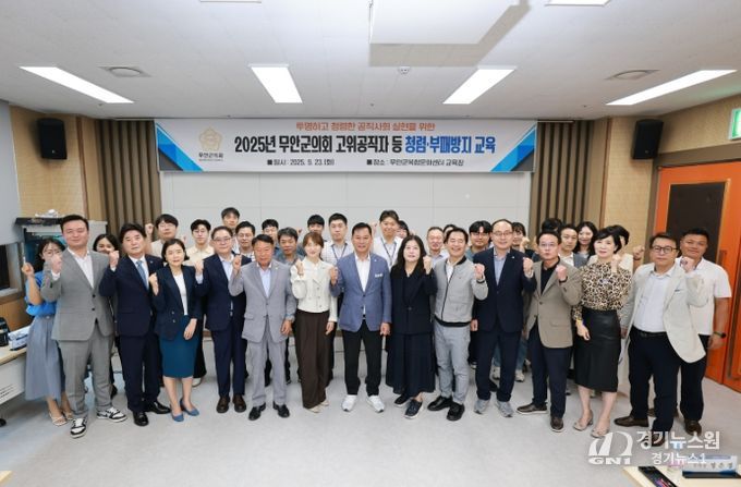 [경기뉴스원/경기뉴스1] | 무안군의회는 9월 23일 무안군복합문화센터 교육장에서 군의원과 의회사무과 공직자를 대상으로 청렴·부패방지 교육, 사회적 장애인식개선 교육, 4대 폭력 예방 교육을 실시했다.